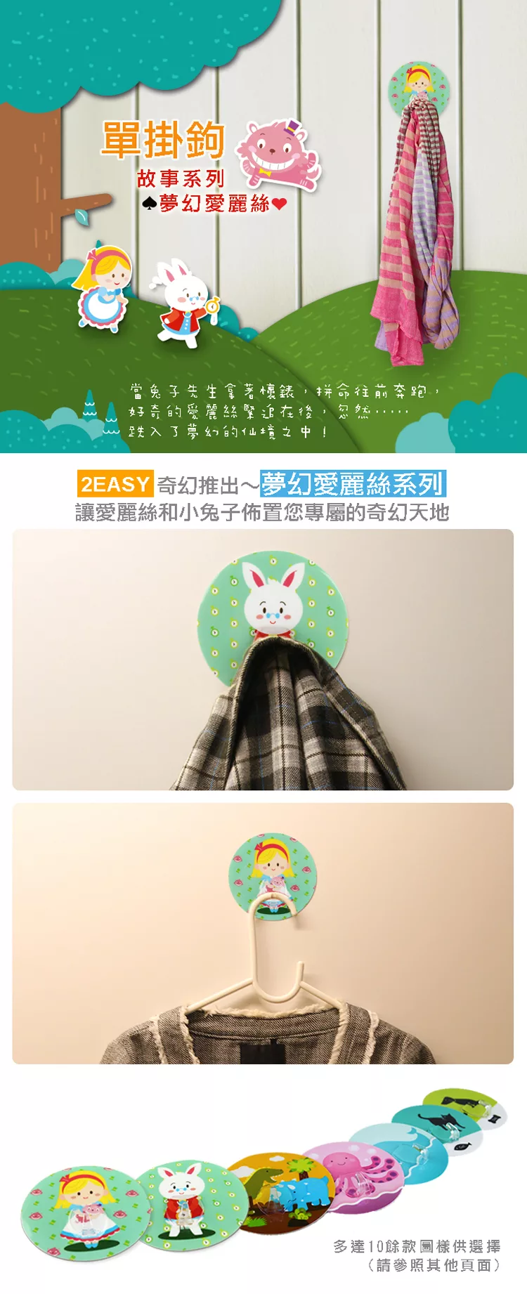 【2EASY】無痕環保掛勾 單掛鉤 - 夢幻愛麗絲(2入組)